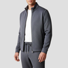 The zip-up jacket features a clean stand collar and functional pockets, paired with drawstring trousers for a naturally adjustable fit. A refined activewear set that balances practicality, simplicity and understated sophistication.