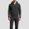 Contrasting side stripes lend a dynamic, modern edge, while practical pockets add subtle functionality. The hoodie’s drawstring detail enhances adaptability, and the joggers provide a comfortable, streamlined fit. A versatile lounge set that merges comfort with contemporary refinement, embodying understated elegance in a distinctly elevated wardrobe essential.